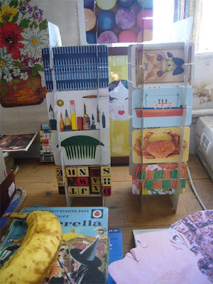 I love everything about making my little mirrors except photographing them, which I find incredibly difficult. (They actually look quite nice in real life. ) Above: if you buy the Lips mirror, I promise that you won't get the maker's arm all over them. I am very fond of the little hat too. Even drawing knitted things provides me knitting-like pleasure! That's a back issue of my favourite magazine there too: The World of Interiors. Over the years, no other magazine has come close in terms of inspiration. Try your local library.